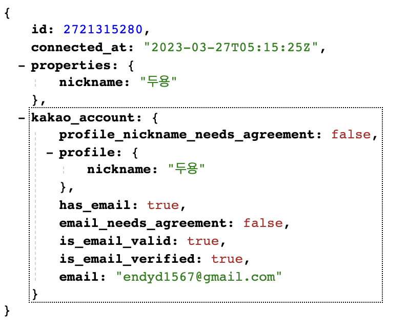System.out.println(" ์ฌ์ฉ์ ์ด๋ฉ์ผ = " + kakaoProfile.getKakao_account().getEmail());